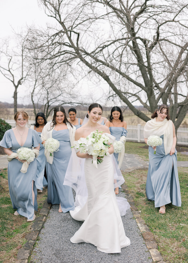 When there is no first look, the majority of the pictures have to be taken after the ceremony. Family pictures are generally done as soon as the ceremony ends because it’s the easiest time to round everyone up. Next up is full bridal party, and then bride and groom portraits. This generally runs into cocktail hour.